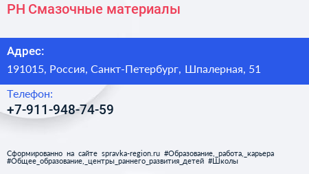 РН-Смазочные материалы по адресу 191015, Россия, Санкт-Петербург, Шпалерная, 51 в дальнейшем Организация, размещена в следующих категориях: