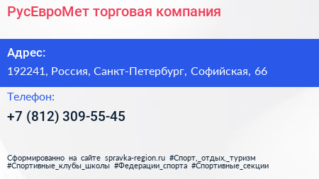 РусЕвроМет, торговая компания по адресу 192241, Россия, Санкт-Петербург, Софийская, 66 в дальнейшем Организация, размещена в следующих категориях: