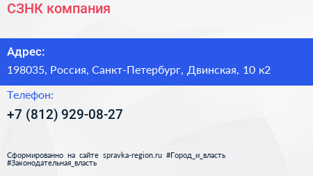 СЗНК, компания по адресу 198035, Россия, Санкт-Петербург, Двинская, 10 к2 в дальнейшем Организация, размещена в следующих категориях: