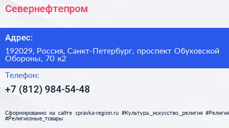 Севернефтепром по адресу 192029, Россия, Санкт-Петербург, проспект Обуховской Обороны, 70 к2 в дальнейшем Организация, размещена в следующих категориях: