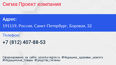 Сигма-Проект, компания по адресу 191119, Россия, Санкт-Петербург, Боровая, 32 в дальнейшем Организация, размещена в следующих категориях: