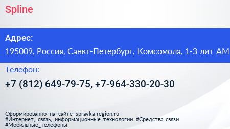 Spline по адресу 195009, Россия, Санкт-Петербург, Комсомола, 1-3 лит АМ в дальнейшем Организация, размещена в следующих категориях: