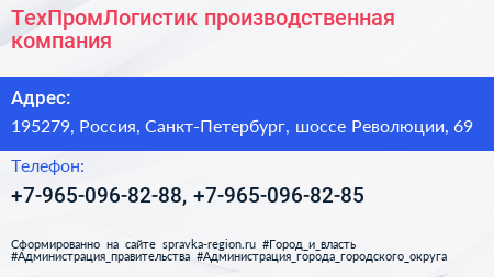 ТехПромЛогистик, производственная компания по адресу 195279, Россия, Санкт-Петербург, шоссе Революции, 69 в дальнейшем Организация, размещена в следующих категориях: