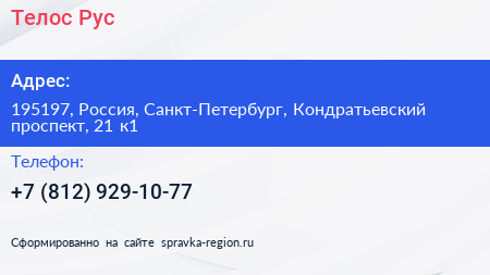 Телос Рус по адресу 195197, Россия, Санкт-Петербург, Кондратьевский проспект, 21 к1 в дальнейшем Организация, размещена в следующих категориях: