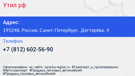 Утил.рф по адресу 195248, Россия, Санкт-Петербург, Дегтярёва, 4 в дальнейшем Организация, размещена в следующих категориях: