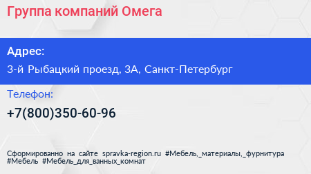 Группа компаний «Омега» по адресу 3-й Рыбацкий проезд, 3А, Санкт-Петербург в дальнейшем Организация, размещена в следующих категориях: