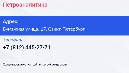 Петроаналитика по адресу Бумажная улица, 17, Санкт-Петербург в дальнейшем Организация, размещена в следующих категориях: