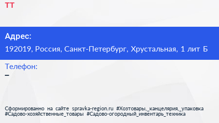 тт по адресу 192019, Россия, Санкт-Петербург, Хрустальная, 1 лит Б в дальнейшем Организация, размещена в следующих категориях: