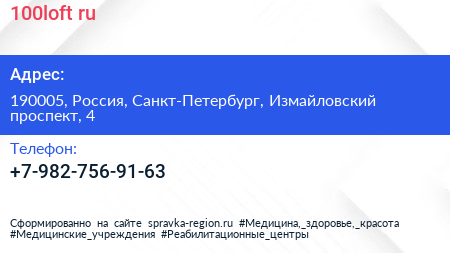 100loft.ru по адресу 190005, Россия, Санкт-Петербург, Измайловский проспект, 4 в дальнейшем Организация, размещена в следующих категориях: