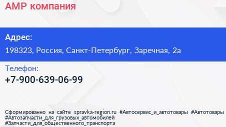 АМР, компания по адресу 198323, Россия, Санкт-Петербург, Заречная, 2а в дальнейшем Организация, размещена в следующих категориях: