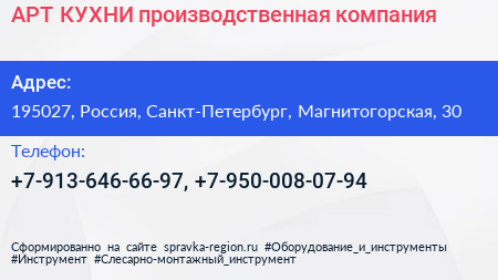 АРТ-КУХНИ, производственная компания по адресу 195027, Россия, Санкт-Петербург, Магнитогорская, 30 в дальнейшем Организация, размещена в следующих категориях: