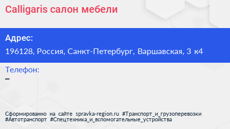 Calligaris, салон мебели по адресу 196128, Россия, Санкт-Петербург, Варшавская, 3 к4 в дальнейшем Организация, размещена в следующих категориях: