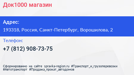 Док1000, магазин по адресу 193318, Россия, Санкт-Петербург, Ворошилова, 2 в дальнейшем Организация, размещена в следующих категориях: