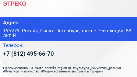 ЭТРЕКО по адресу 195279, Россия, Санкт-Петербург, шоссе Революции, 88 лит И в дальнейшем Организация, размещена в следующих категориях: