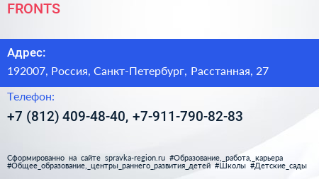 FRONTS по адресу 192007, Россия, Санкт-Петербург, Расстанная, 27 в дальнейшем Организация, размещена в следующих категориях: