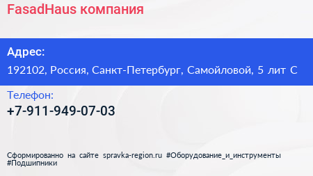 FasadHaus, компания по адресу 192102, Россия, Санкт-Петербург, Самойловой, 5 лит С в дальнейшем Организация, размещена в следующих категориях: