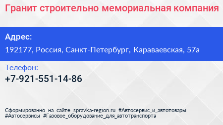 Гранит, строительно-мемориальная компания по адресу 192177, Россия, Санкт-Петербург, Караваевская, 57а в дальнейшем Организация, размещена в следующих категориях: