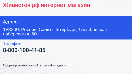Живистоя.рф, интернет-магазин по адресу 193230, Россия, Санкт-Петербург, Октябрьская набережная, 50 в дальнейшем Организация, размещена в следующих категориях: