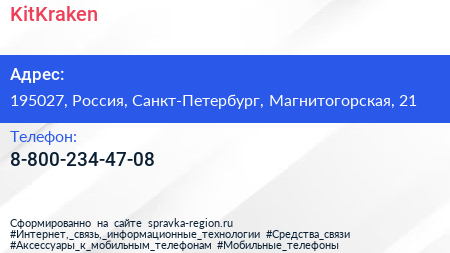 KitKraken по адресу 195027, Россия, Санкт-Петербург, Магнитогорская, 21 в дальнейшем Организация, размещена в следующих категориях: