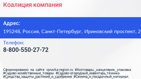 Коалиция, компания по адресу 195248, Россия, Санкт-Петербург, Ириновский проспект, 2 в дальнейшем Организация, размещена в следующих категориях: