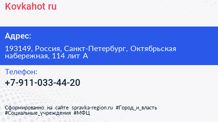 Kovkahot.ru по адресу 193149, Россия, Санкт-Петербург, Октябрьская набережная, 114 лит А в дальнейшем Организация, размещена в следующих категориях: