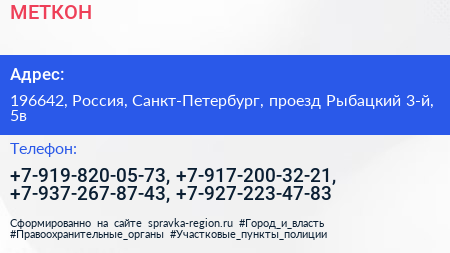 МЕТКОН по адресу 196642, Россия, Санкт-Петербург, проезд Рыбацкий 3-й, 5в в дальнейшем Организация, размещена в следующих категориях: