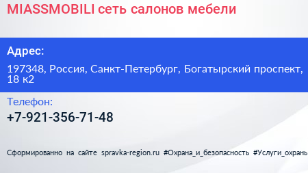 MIASSMOBILI, сеть салонов мебели по адресу 197348, Россия, Санкт-Петербург, Богатырский проспект, 18 к2 в дальнейшем Организация, размещена в следующих категориях: