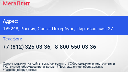МегаПлит по адресу 195248, Россия, Санкт-Петербург, Партизанская, 27 в дальнейшем Организация, размещена в следующих категориях: