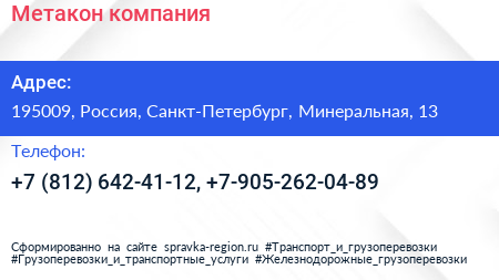 Метакон, компания по адресу 195009, Россия, Санкт-Петербург, Минеральная, 13 в дальнейшем Организация, размещена в следующих категориях: