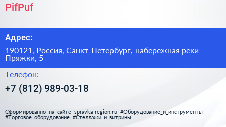 PifPuf по адресу 190121, Россия, Санкт-Петербург, набережная реки Пряжки, 5 в дальнейшем Организация, размещена в следующих категориях: