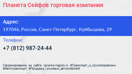 Планета-Сейфов, торговая компания по адресу 197046, Россия, Санкт-Петербург, Куйбышева, 29 в дальнейшем Организация, размещена в следующих категориях: