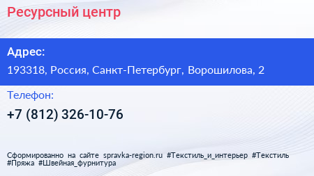 Ресурсный центр по адресу 193318, Россия, Санкт-Петербург, Ворошилова, 2 в дальнейшем Организация, размещена в следующих категориях: