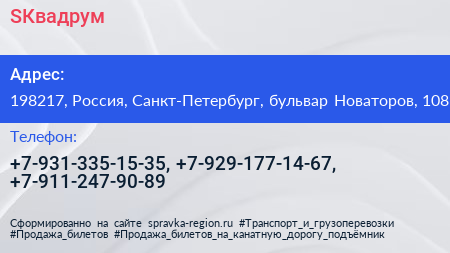 SКвадрум по адресу 198217, Россия, Санкт-Петербург, бульвар Новаторов, 108 в дальнейшем Организация, размещена в следующих категориях: