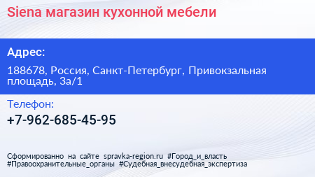 Siena, магазин кухонной мебели по адресу 188678, Россия, Санкт-Петербург, Привокзальная площадь, 3а/1 в дальнейшем Организация, размещена в следующих категориях: