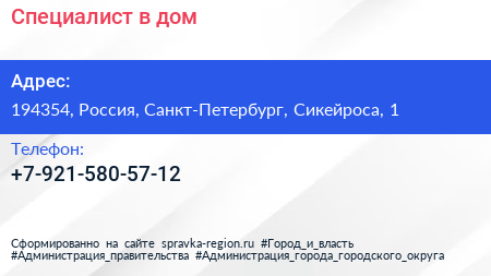 Специалист в дом по адресу 194354, Россия, Санкт-Петербург, Сикейроса, 1 в дальнейшем Организация, размещена в следующих категориях: