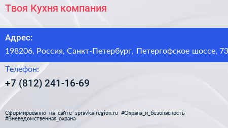 Твоя Кухня, компания по адресу 198206, Россия, Санкт-Петербург, Петергофское шоссе, 73 в дальнейшем Организация, размещена в следующих категориях: