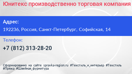 Юнитекс, производственно-торговая компания по адресу 192236, Россия, Санкт-Петербург, Софийская, 14 в дальнейшем Организация, размещена в следующих категориях: