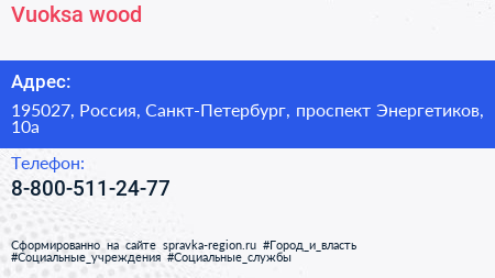 Vuoksa-wood по адресу 195027, Россия, Санкт-Петербург, проспект Энергетиков, 10а в дальнейшем Организация, размещена в следующих категориях: