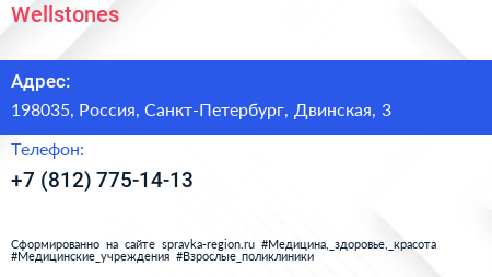 Wellstones по адресу 198035, Россия, Санкт-Петербург, Двинская, 3 в дальнейшем Организация, размещена в следующих категориях:
