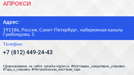 АПРОКСИ по адресу 191186, Россия, Санкт-Петербург, набережная канала Грибоедова, 5 в дальнейшем Организация, размещена в следующих категориях: