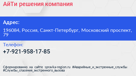 АйТи решения, компания по адресу 196084, Россия, Санкт-Петербург, Московский проспект, 79 в дальнейшем Организация, размещена в следующих категориях: