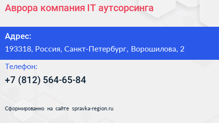 Аврора, компания IT-аутсорсинга по адресу 193318, Россия, Санкт-Петербург, Ворошилова, 2 в дальнейшем Организация, размещена в следующих категориях: