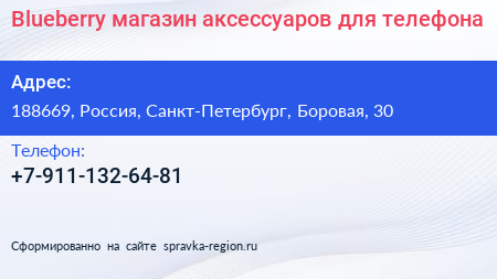 Blueberry, магазин аксессуаров для телефона по адресу 188669, Россия, Санкт-Петербург, Боровая, 30 в дальнейшем Организация, размещена в следующих категориях: