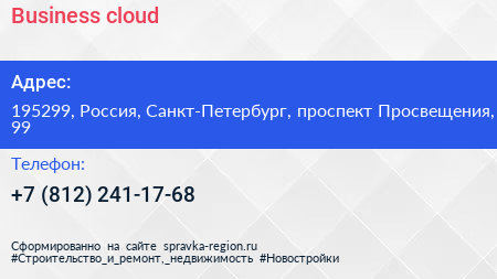 Business cloud по адресу 195299, Россия, Санкт-Петербург, проспект Просвещения, 99 в дальнейшем Организация, размещена в следующих категориях: