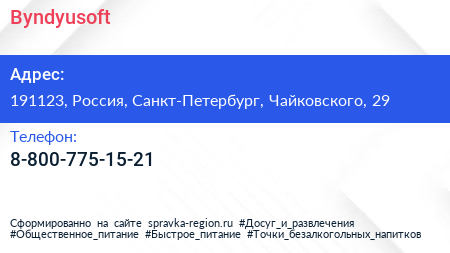 Byndyusoft по адресу 191123, Россия, Санкт-Петербург, Чайковского, 29 в дальнейшем Организация, размещена в следующих категориях: