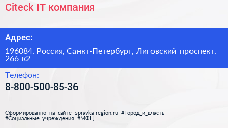 Citeck, IT-компания по адресу 196084, Россия, Санкт-Петербург, Лиговский проспект, 266 к2 в дальнейшем Организация, размещена в следующих категориях: