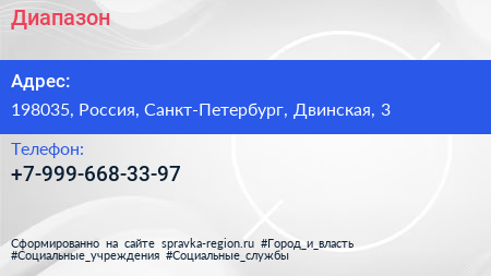 Диапазон по адресу 198035, Россия, Санкт-Петербург, Двинская, 3 в дальнейшем Организация, размещена в следующих категориях: