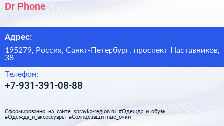 Dr.Phone по адресу 195279, Россия, Санкт-Петербург, проспект Наставников, 38 в дальнейшем Организация, размещена в следующих категориях: