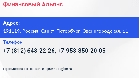 Финансовый Альянс по адресу 191119, Россия, Санкт-Петербург, Звенигородская, 11 в дальнейшем Организация, размещена в следующих категориях: