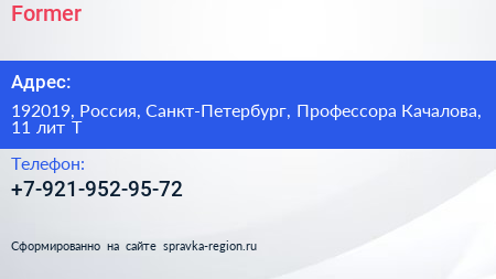 Former по адресу 192019, Россия, Санкт-Петербург, Профессора Качалова, 11 лит Т в дальнейшем Организация, размещена в следующих категориях:
